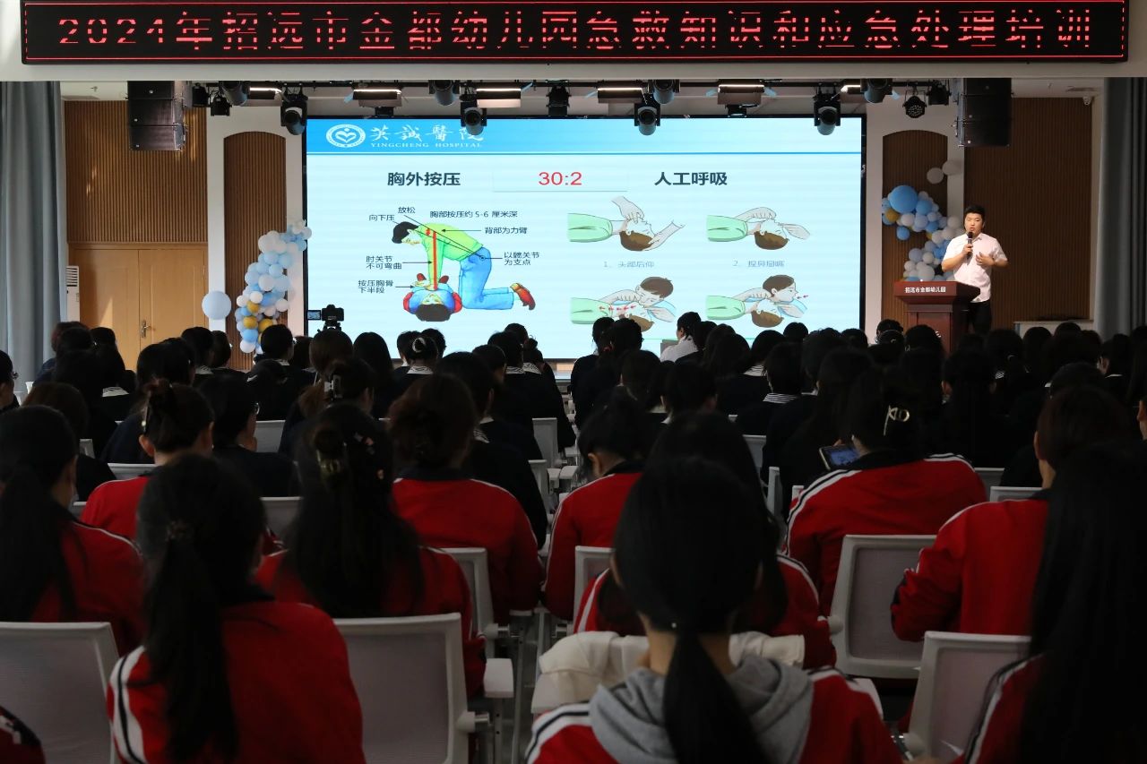 安全看护是幼儿园工作的基础,也是重中之重。当生命危机或意外出现时,如何能够沉着冷静,并能在宝贵的时间内有效地挽救生命,成为了幼教工作者不可或缺的知识储备。为提升幼儿园教职工健康安全意识,增强自救互救能力,玲珑英诚医院120急救护培训讲师走进金都幼儿园,为五个分园150余名教职工开展应急救护知识和技能培训活动。