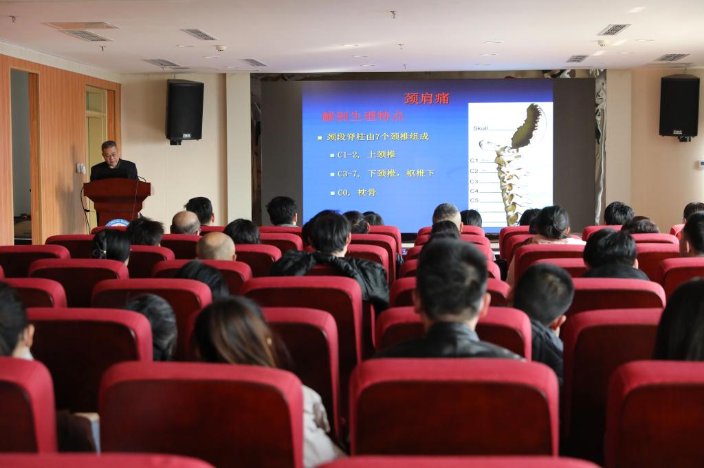 2025年2月28日,由招远市卫生健康局主办,玲珑英诚医院承办的卫健大讲堂之《颈肩腰腿痛的诊断与治疗》培训会议在玲珑英诚医院内科楼 5 楼会议室成功举办,全市各医疗机构内科、外科、医学影像科等业务骨干80余人参加了培训。