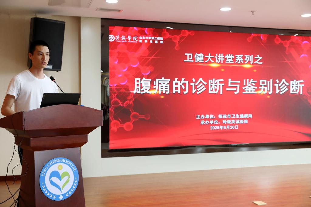 2025年6月20日,由招远市卫生健康局主办,玲珑英诚医院承办的卫健大讲堂之《腹痛的诊断与鉴别诊断》培训会议在玲珑英诚医院内科楼5楼会议室成功举办,全市各医疗机构内科、外科等业务骨干60余人参加了培训。