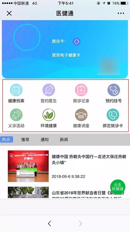 为深入贯彻落实省卫健委关于开展“互联网+医疗健康”便民惠民百日行动会议精神,提升我院的医疗卫生服务水平,我院微信公众号玲珑英诚医院和山东玲珑英诚医院近日成功对接“山东医健通”,开放电子健康卡、找医院、找医生、云急救、环境健康等医疗健康服务,极大方便患者查询就医,真正实现便民惠民。