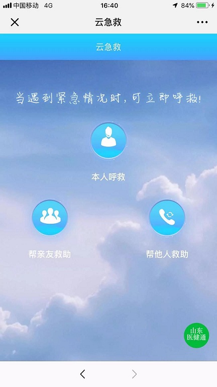 接入了全省各市急救中心“120”调度指挥系,实现急救患者一键报警、自动定位,缩短急救车到达时间。用户通过它可以进行“本人呼救”“帮亲友救助”“帮他人救助”。