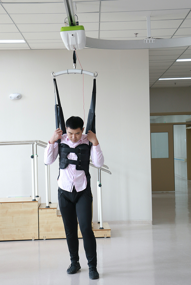 左图:四肢联动康复训练仪 右图:减重支持训练系统