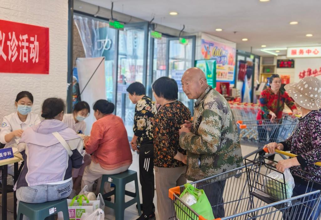 活动现场,前来超市购物的居民纷纷驻足参与。在医护人员的引导下,大家有序排队进行血糖、血压测量,并就自身健康问题展开咨询。医护团队以专业的素养、热情的态度,细致解答每位群众的疑问,从疾病预防、日常保健到用药指导,均给予详尽建议;同时通过生动讲解,引导群众树立科学健康的生活方式,强化自我保健与防护意识。