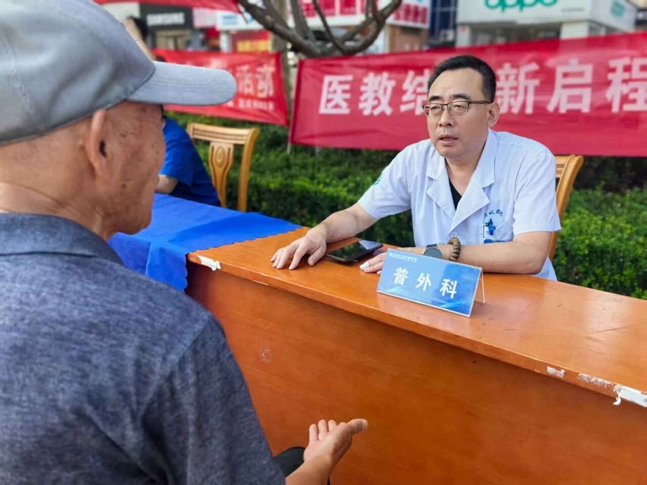 义诊活动吸引了大量市民驻足参与。玲珑英诚医院普外科、神经外科和疼痛科医护团队,为市民提供面对面的健康咨询和诊疗服务。