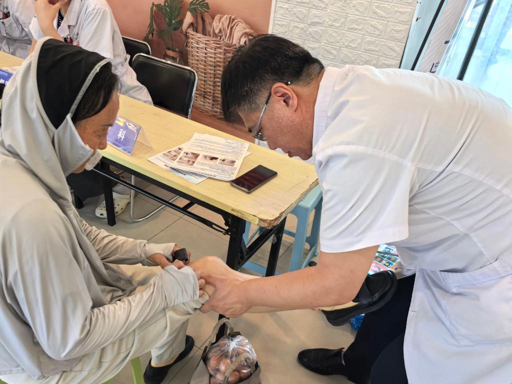 “在家门口就能享受专业医疗服务,既方便又贴心!” 不少居民对活动给予高度评价。一位参与义诊的老人表示:“医生不仅帮我测了血压、血糖,还详细讲解了用药注意事项,这样的服务太实用了!” 现场互动中,医护人员还针对老年人常见的关节疼痛、睡眠障碍等问题提供中医理疗体验,让健康服务更具温度。