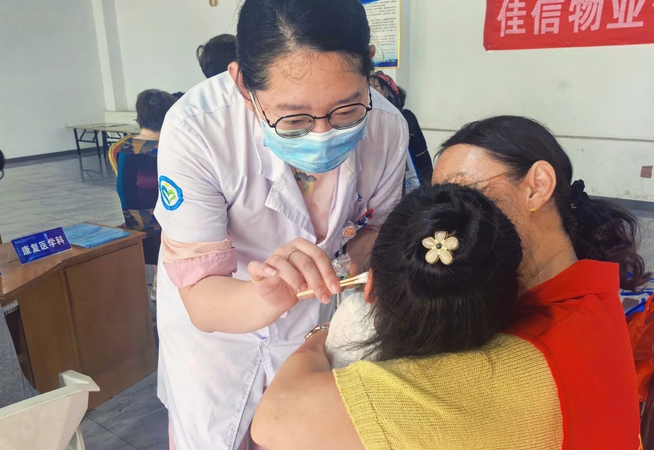 与此同时,康复医学科的医生耐心细致地为居民进行中医体质辨识和诊疗,还运用针灸放血技术,当场缓解了疼痛等不适,还结合个人体质,提供了专业、实用的中医养生保健和疾病预防指导,将“治未病”理念和传统养生智慧传递给居民。