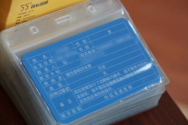 最后,血液净化科的医护人员为病友们送上了他们精心制作的个人信息卡,卡上记载了肾友家属及英诚医护人员联系方式,并标注了肾友动静脉内瘘的位置,以便肾友出现意外情况时保护内瘘。