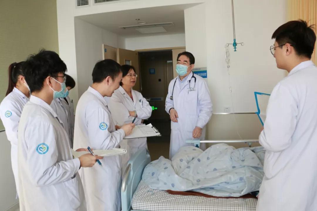 许教授是山东大学第二医院神经内科每两周来我院进行一次查房和坐诊的专家之一。许教授在刘淑清、刘明月等主任以及各位医师的陪同下来到病床前,认真听取了病历汇报,详细追问了病史,并进行全面的神经系统查体,之后对病人的诊断提出自己的意见,并就病因、发病机制、下一步检查计划以及治疗做了详细的阐述。查房后,一位头痛病人的父亲情不自禁的对我们的医生说:“真好哎,不用去济南就有省里的专家给我儿子看病了。”