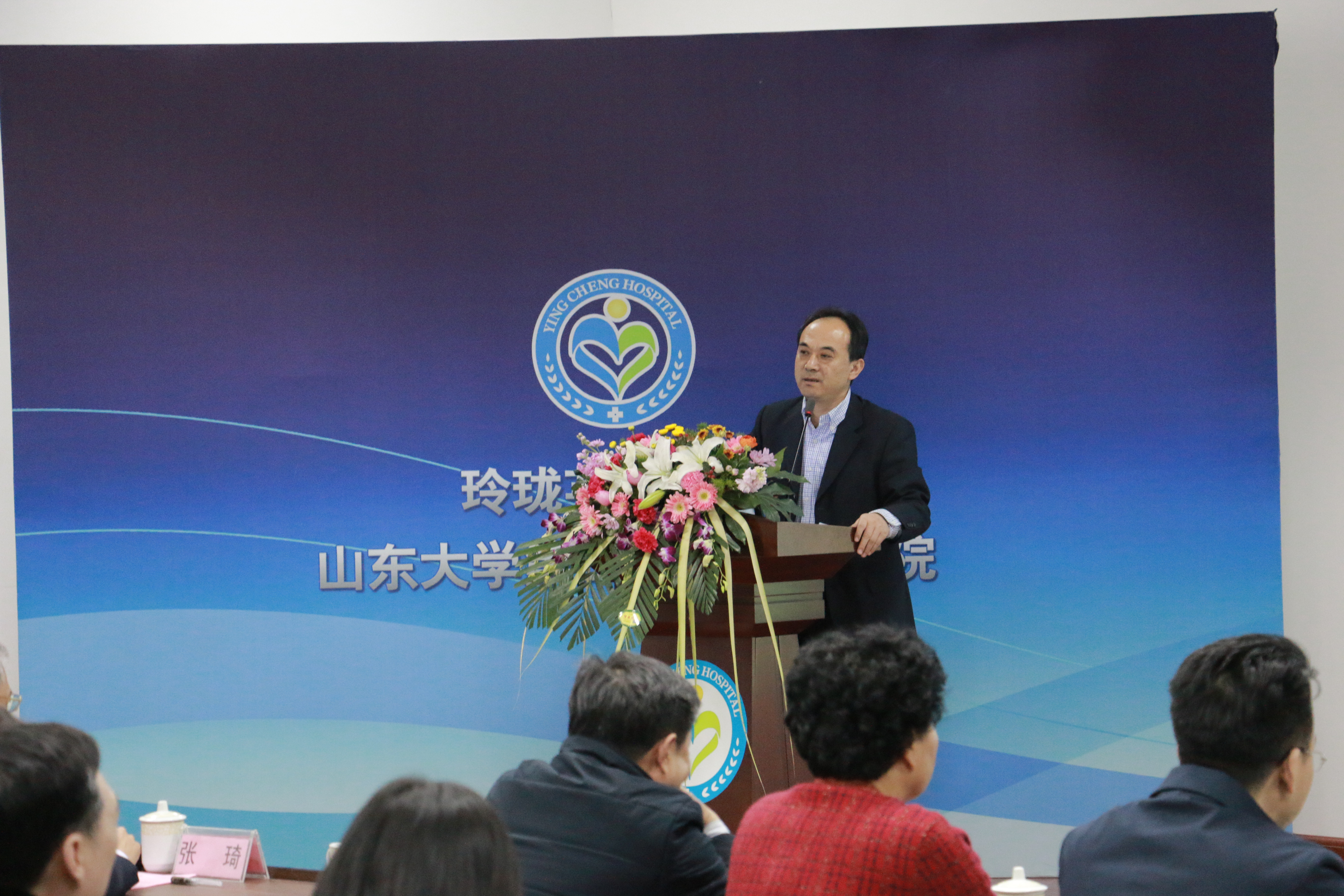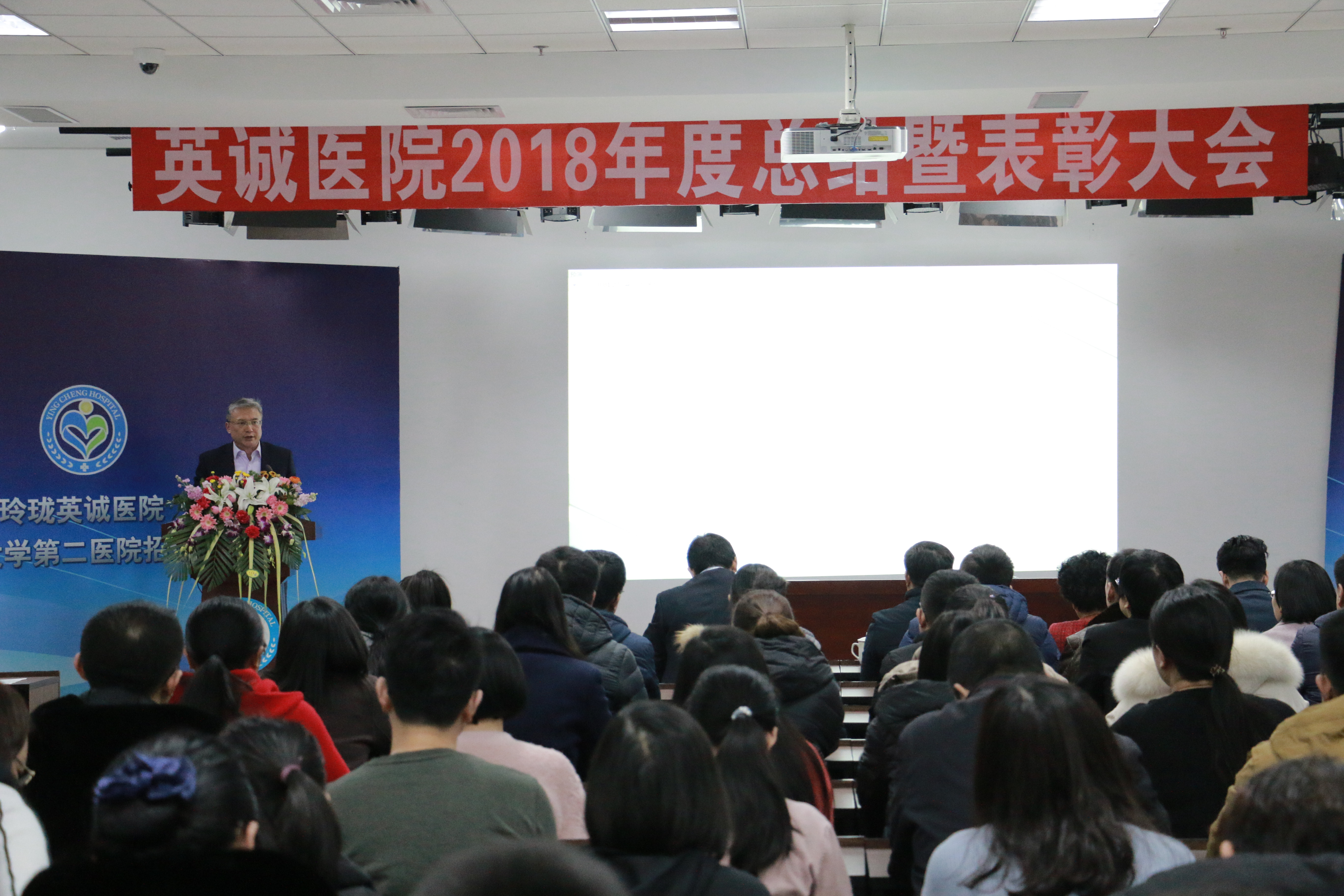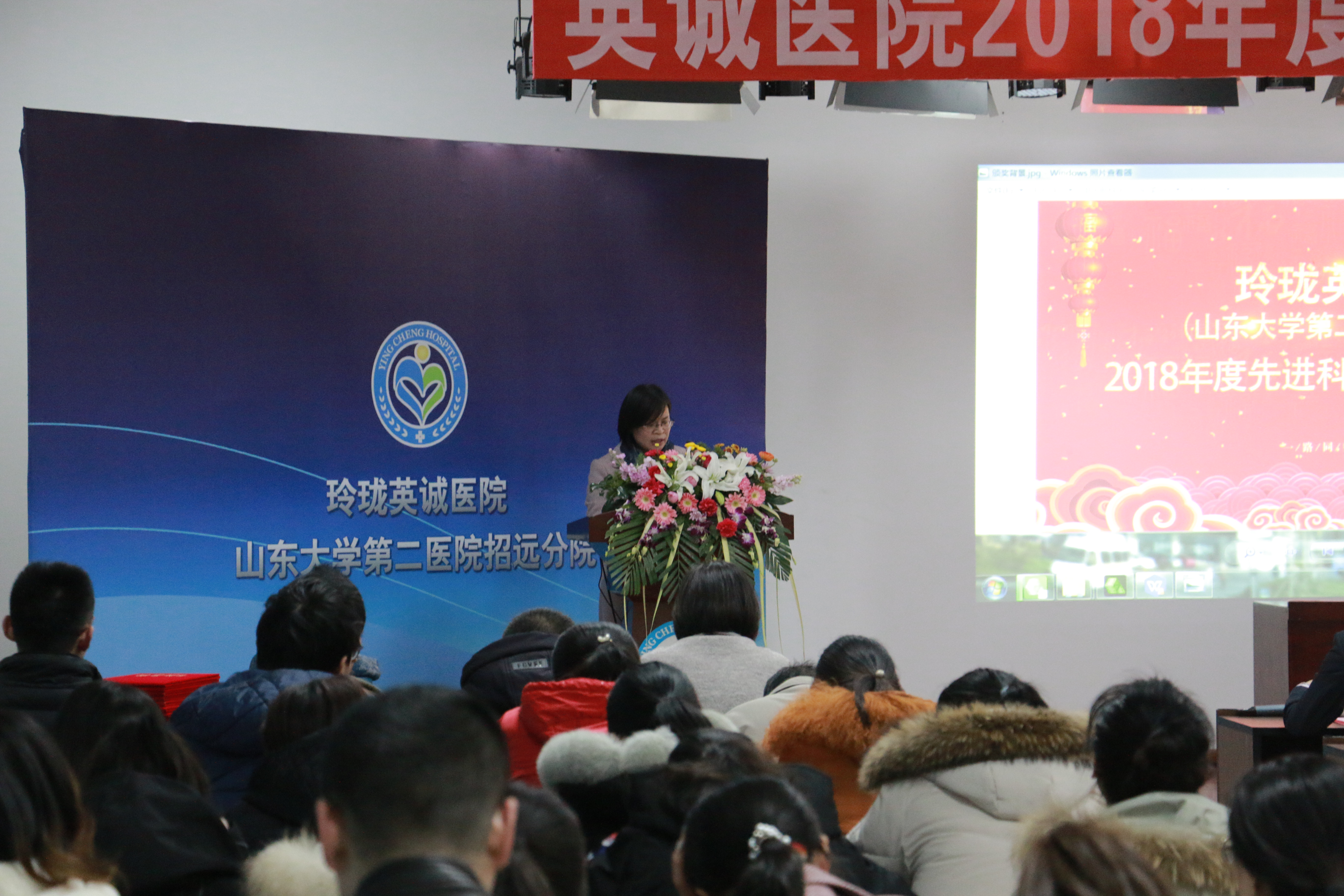 会议在雄壮的国歌声中正式拉开帷幕。“宝剑锋从磨砺出,梅花香自苦寒来”。在英诚医院全体干部职工的不懈努力下,2018年成为医院发展历程中具有里程碑意义的一年。在这一年里,我们顺利增设了产科、康复科等六个临床科室,组建了卒中、胸痛等六大区域医疗中心,投入使用二期内科大楼,临床重点科室完进一步细化发展,实际开放床位增至686张,并圆满完成全年总目标。