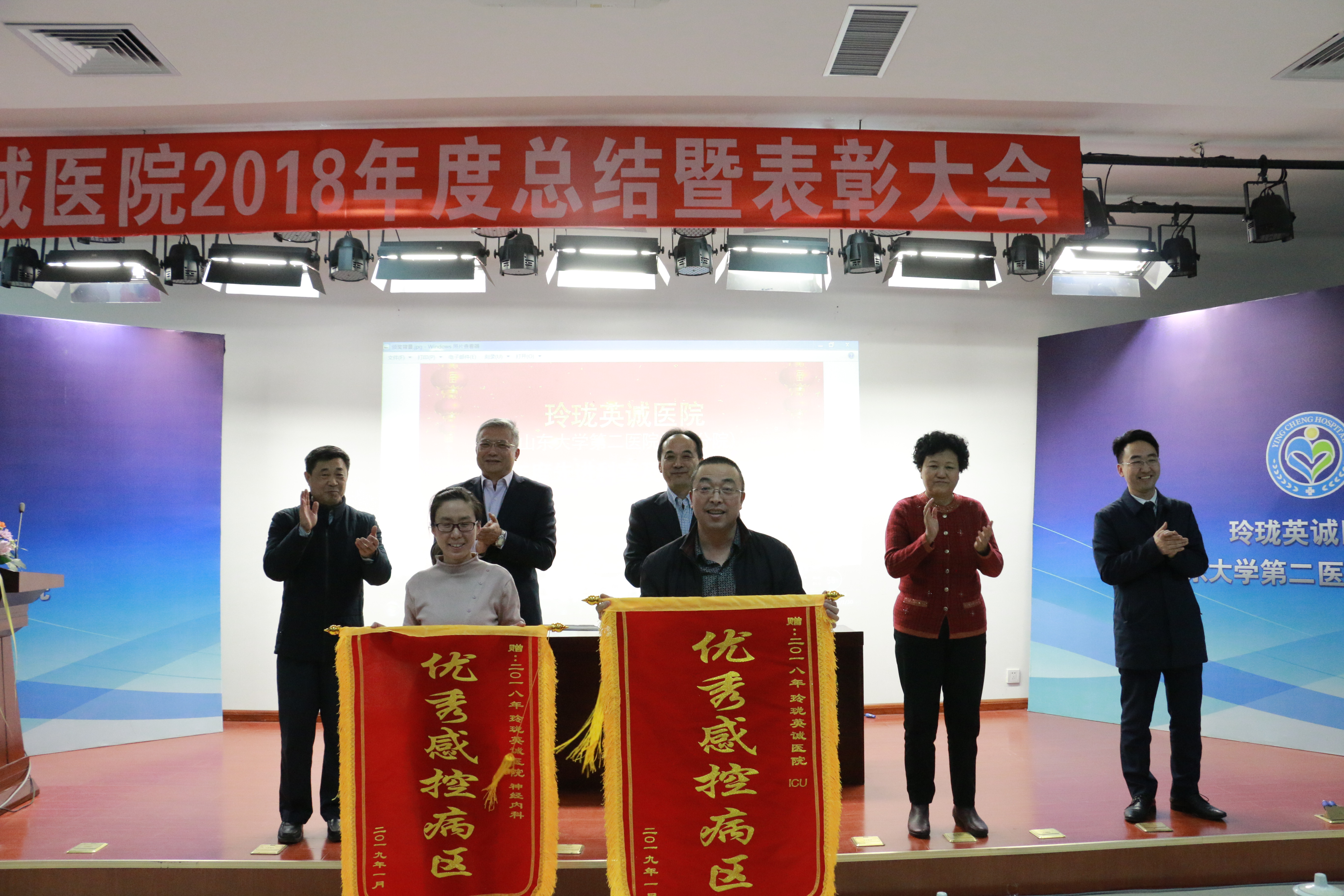 为鼓励先进、激发活力,大会表彰了2018年度医院先进科室、先进个人、优秀感控病区、优秀感控医师和护士等。院领导为获奖先进科室科主任及先进个人颁发了锦旗和荣誉证书。希望全院职工对标先进,奋勇争先。