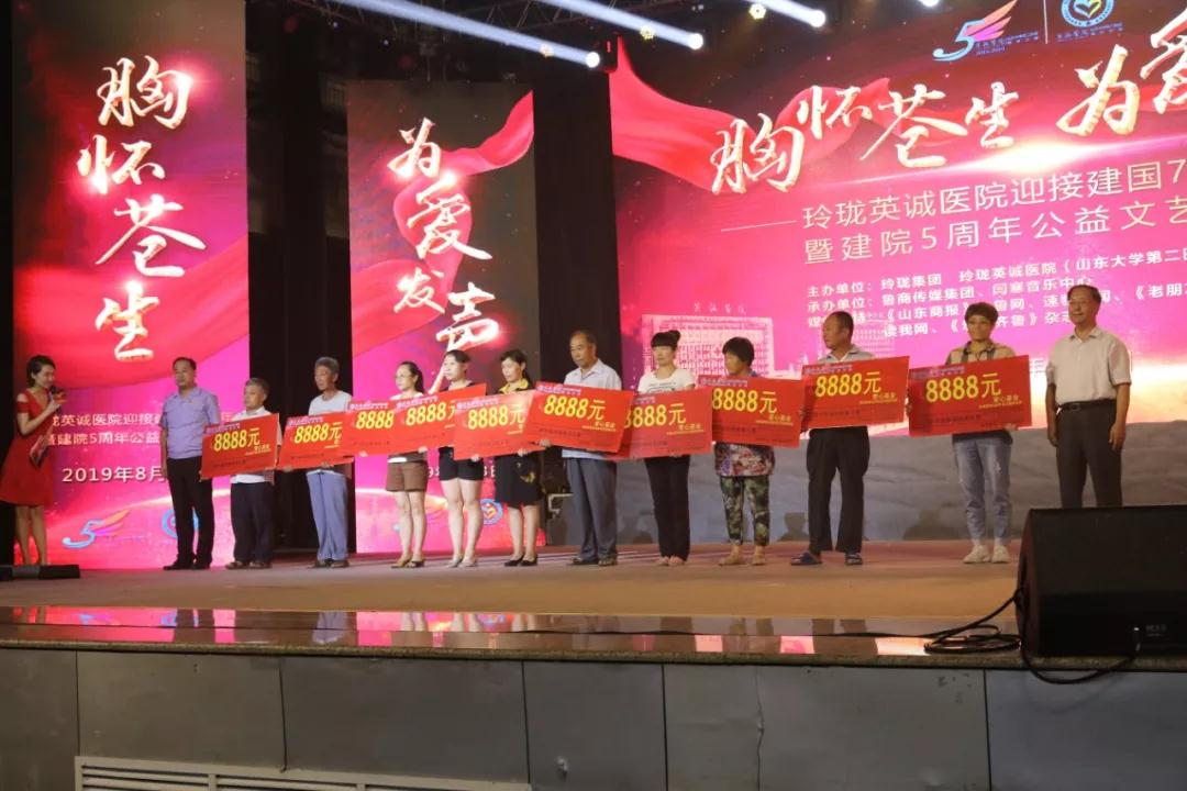 晚会邀请了山东电视台著名节目主持人李鑫到场主持,晚会中《永恒的向往》、《拥抱黎明》、《祖国你好》、《唱支山歌给党听》等一个个不同形式的精彩文艺节目轮番上演,唱出了玲珑人积极向上的风貌,讴歌了伟大的祖国,博得了现场观众的阵阵喝彩声。晚会的百万健康基金回馈抽奖、为10户因病致贫的家庭发放8888元家庭救助金环节,更是将晚会推向了高潮。