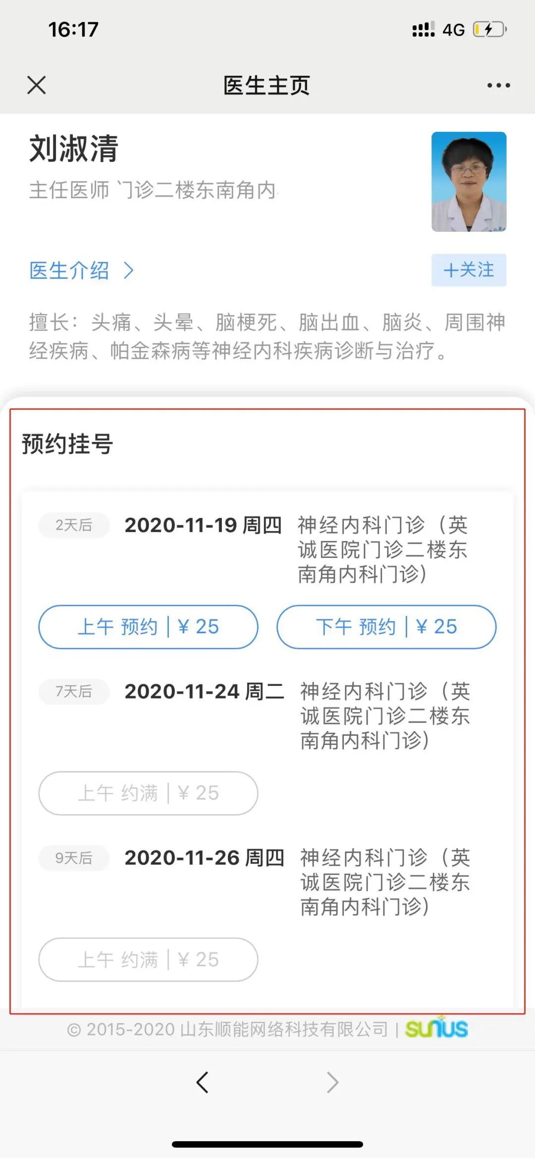 2.即弹出的医生推荐界面,如需就诊,就可以选择医生,点击“挂号”按时间段进行预约。