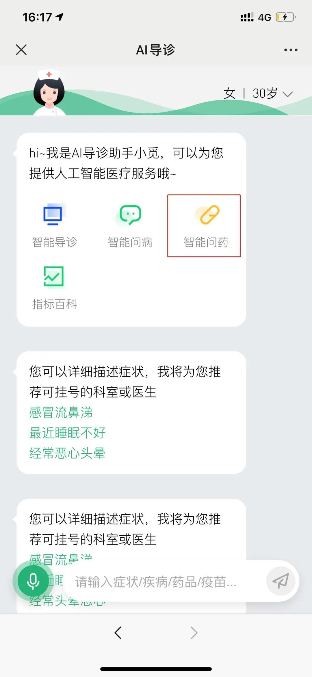 AI导诊是一款智能化导诊软件,能够快速识别用户描述后,为用户自动推荐就医路线、讲解病症和药物,支持用户用文字或者语音进行描述。AI导诊目前开放了智能导诊、智能问病、智能问药、指标百科4个人工智能医疗服务。