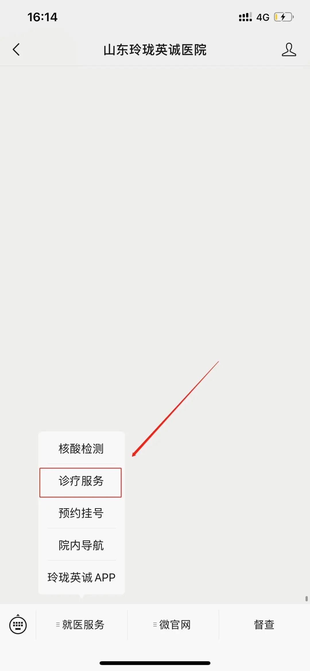 1.搜索并关注公众号“山东玲珑英诚医院”(已关注可省略此步骤);