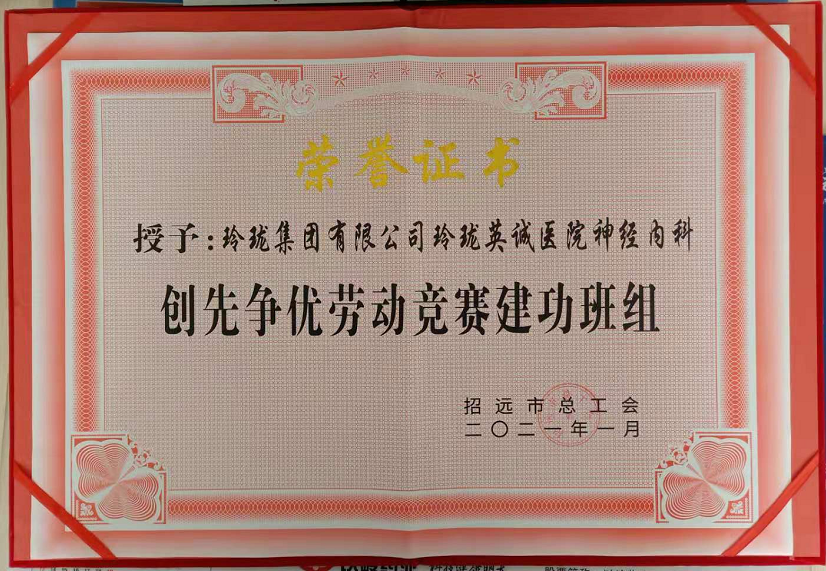 玲珑英诚医院神经内科是医院重点特色科室,共有医师23人、护士34人,分神经内一、神经内二两个病区,开放总床位70张。2020年,神经内科在人才梯队建设、医疗质量控制、新技术开展等各项工作中动员医护人员树立进取意识、危机意识和责任意识,严格执行三级医师负责制,并形成以山东大学第二医院本部神经内科专家为主导的学习模式,积极组织参加医师“青年论坛”、护理“天使论坛”学术竞赛,团队一方面呈现出以老带新的学习局面,一面呈现出“人人比贡献”的竞争氛围。因此,科室收治急危重症患者能提大大提升,2020开展神经介入手术80余台,科室刘淑清主任医师获评“招远市学科带头人”荣誉称号。
