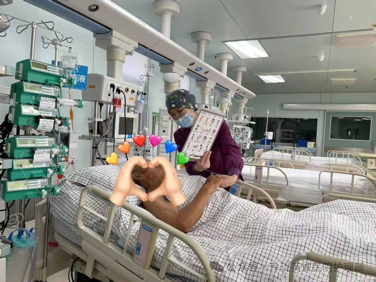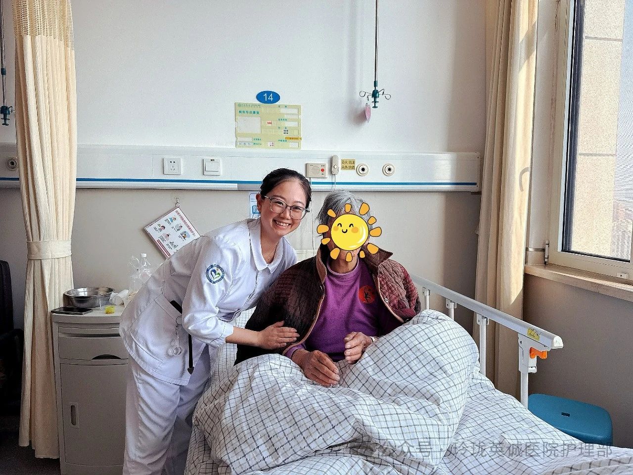 16号作品:《最有爱的笑脸》护士眉眼含笑,亲切地依偎在患者身边。她的手轻轻搭在患者肩头,传递着无尽的温暖与力量。