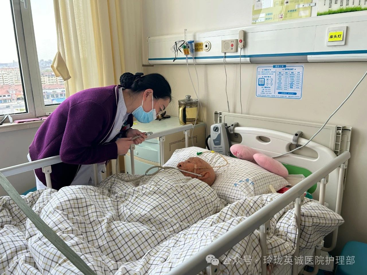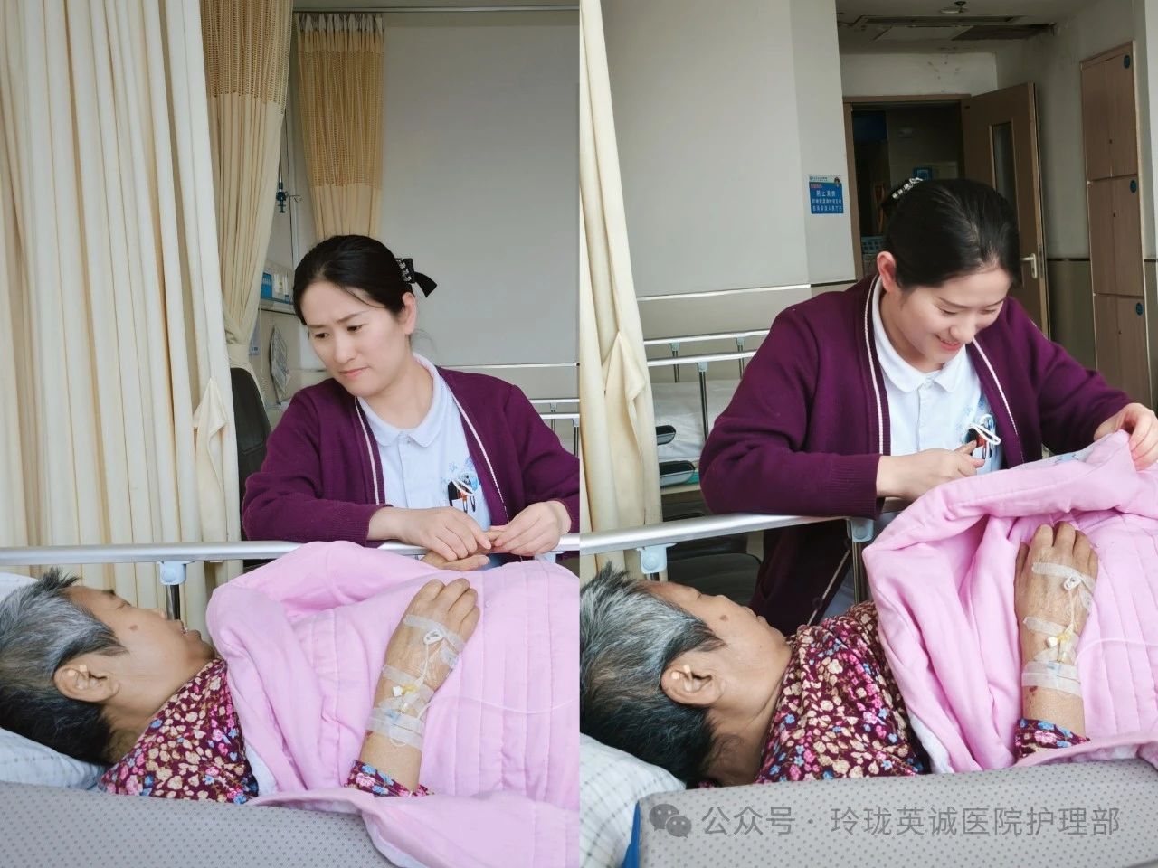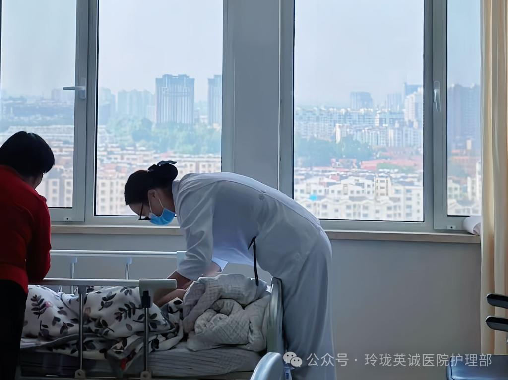 12号作品:《温情护理,贴心相伴》在医院病房的窗边,柔和的光线洒落。护理人员身着白衣细心的为爷爷进行踝泵运动指导,每一个动作都饱含温柔与关切,身旁家属关切陪伴。