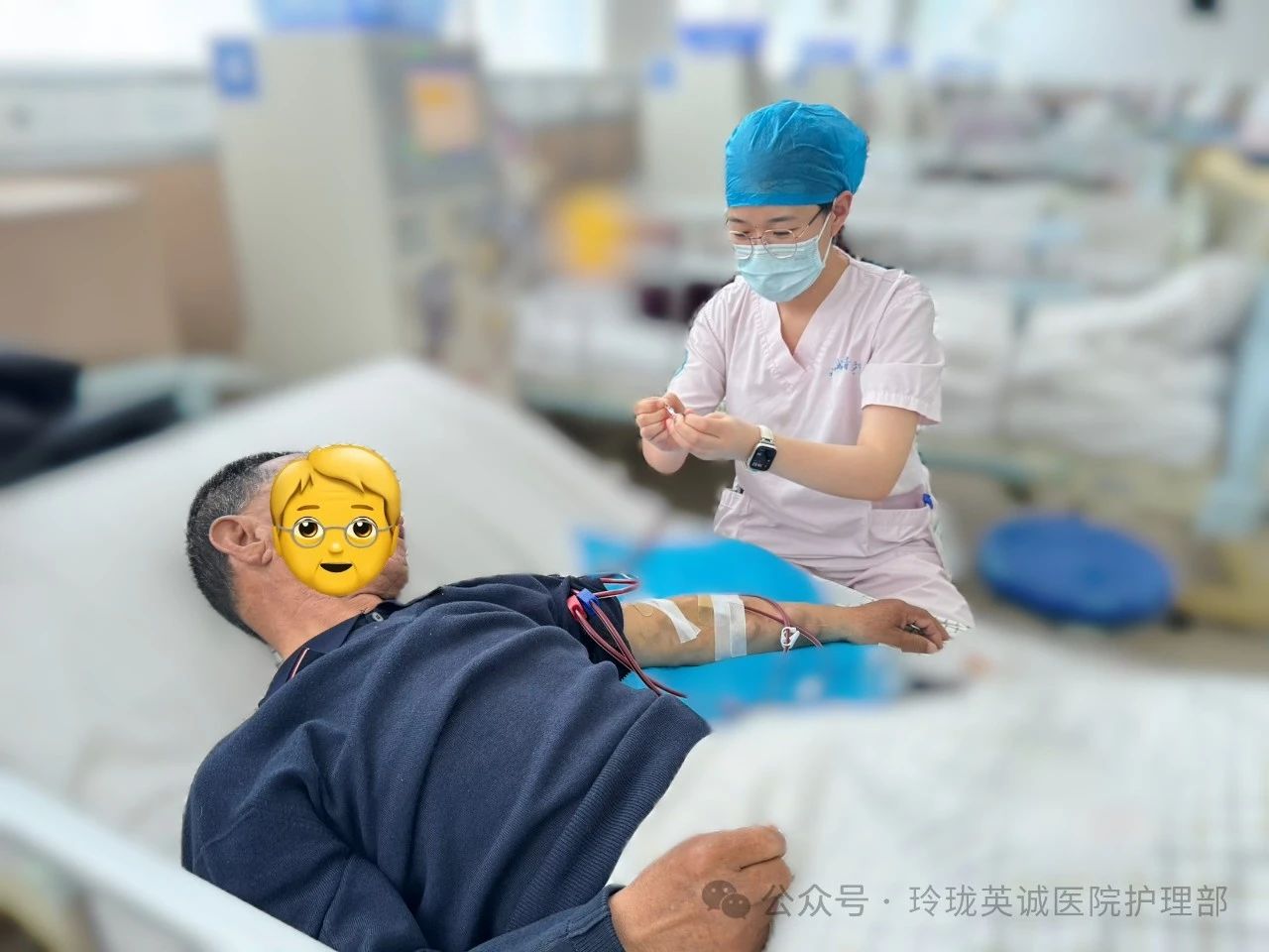 2号作品:《爱与陪伴,无处不在》赵大爷突然面色苍白、双手颤抖,低血糖症状悄然袭来。血透护士立刻察觉,她迅速剥开糖果放进赵大爷的嘴里,眼神满是关切。很快赵大爷缓了过来,微笑着向护士道谢。这瞬间的反应,是专业的素养,更是爱的本能。