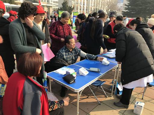3月5日是学雷锋纪念日,我院为更好地弘扬雷锋精神,服务社会,组织内科及外科医师前往府前广场开展义诊活动,为上千名市民提供免费健康体检及指导。