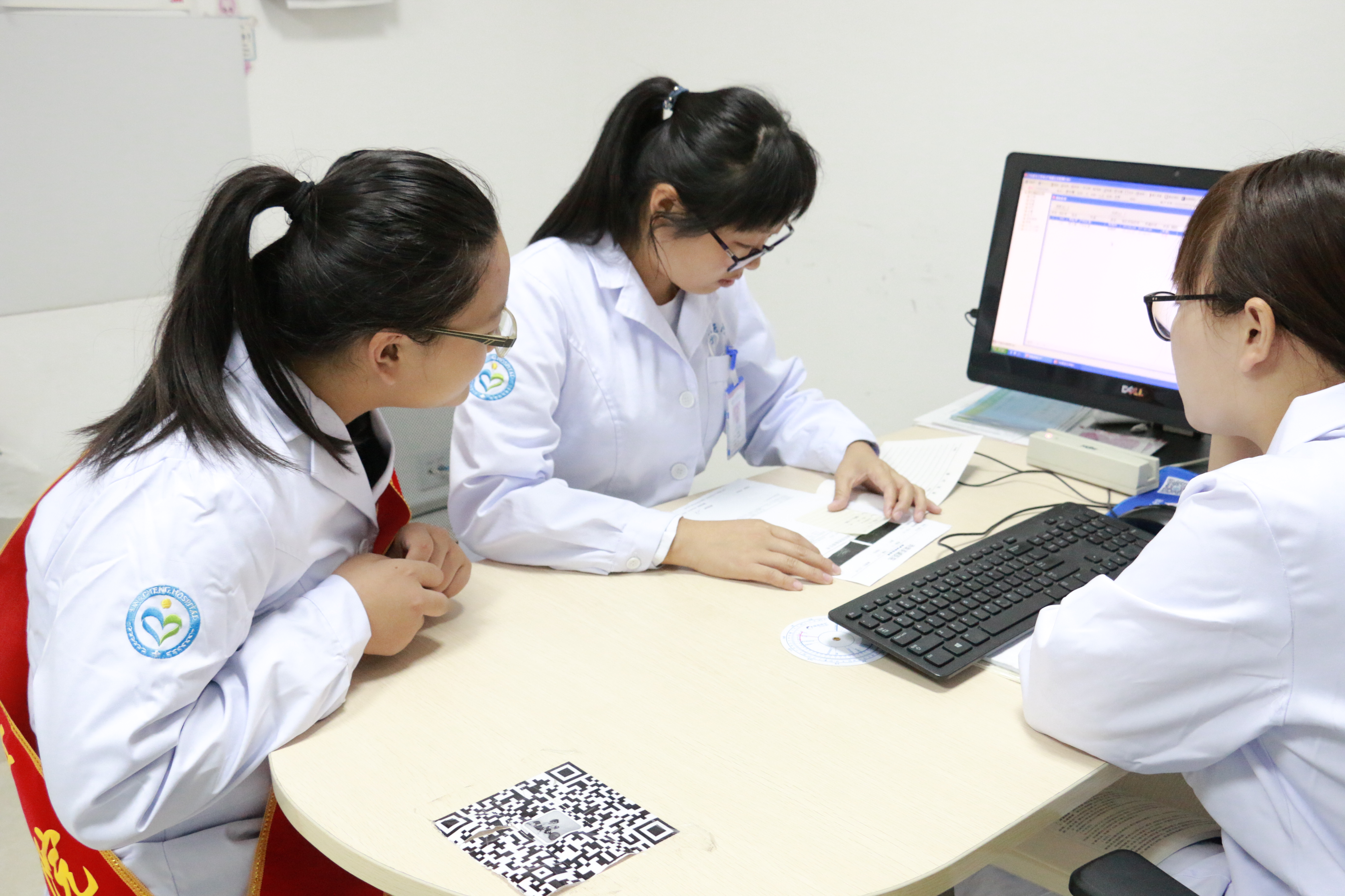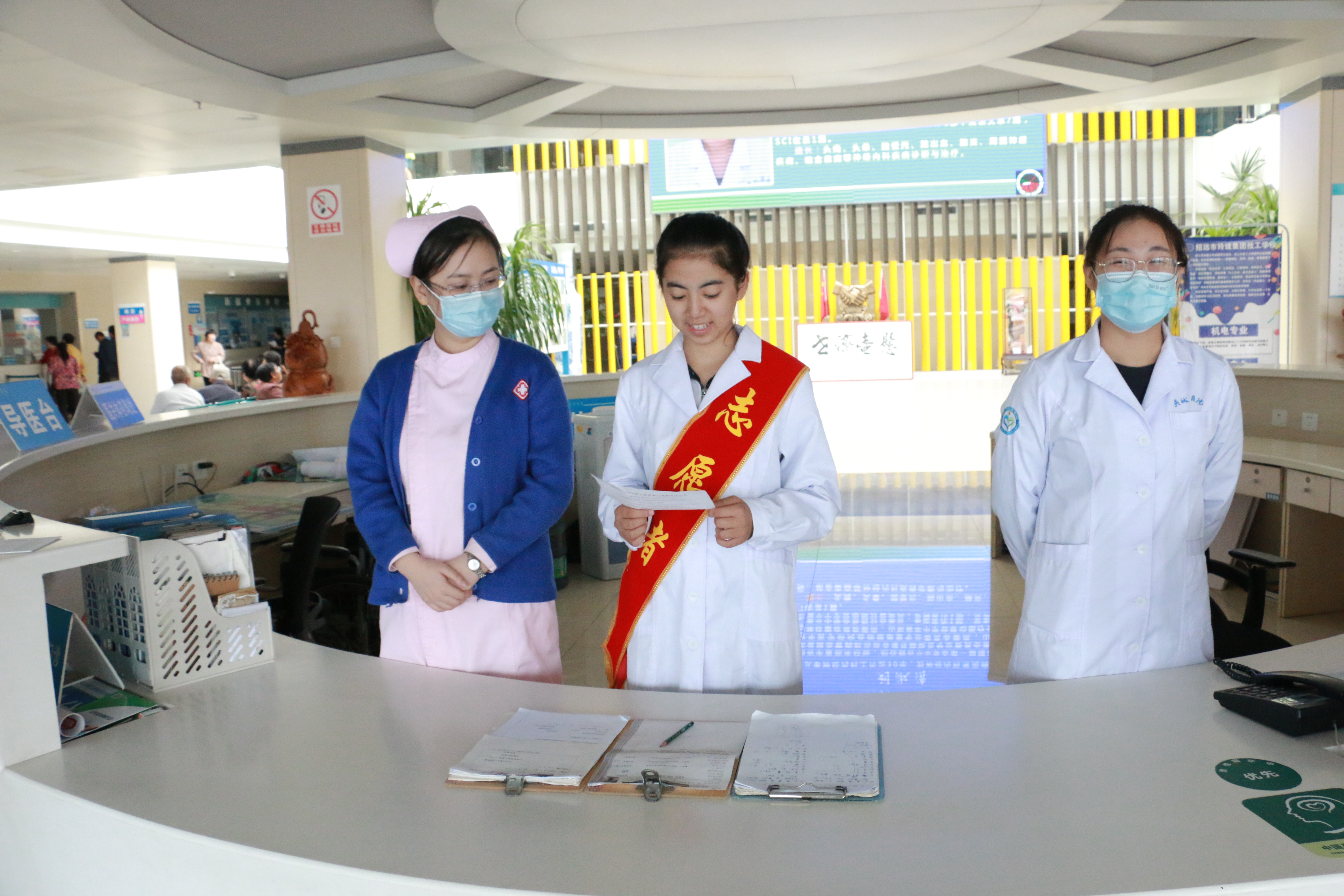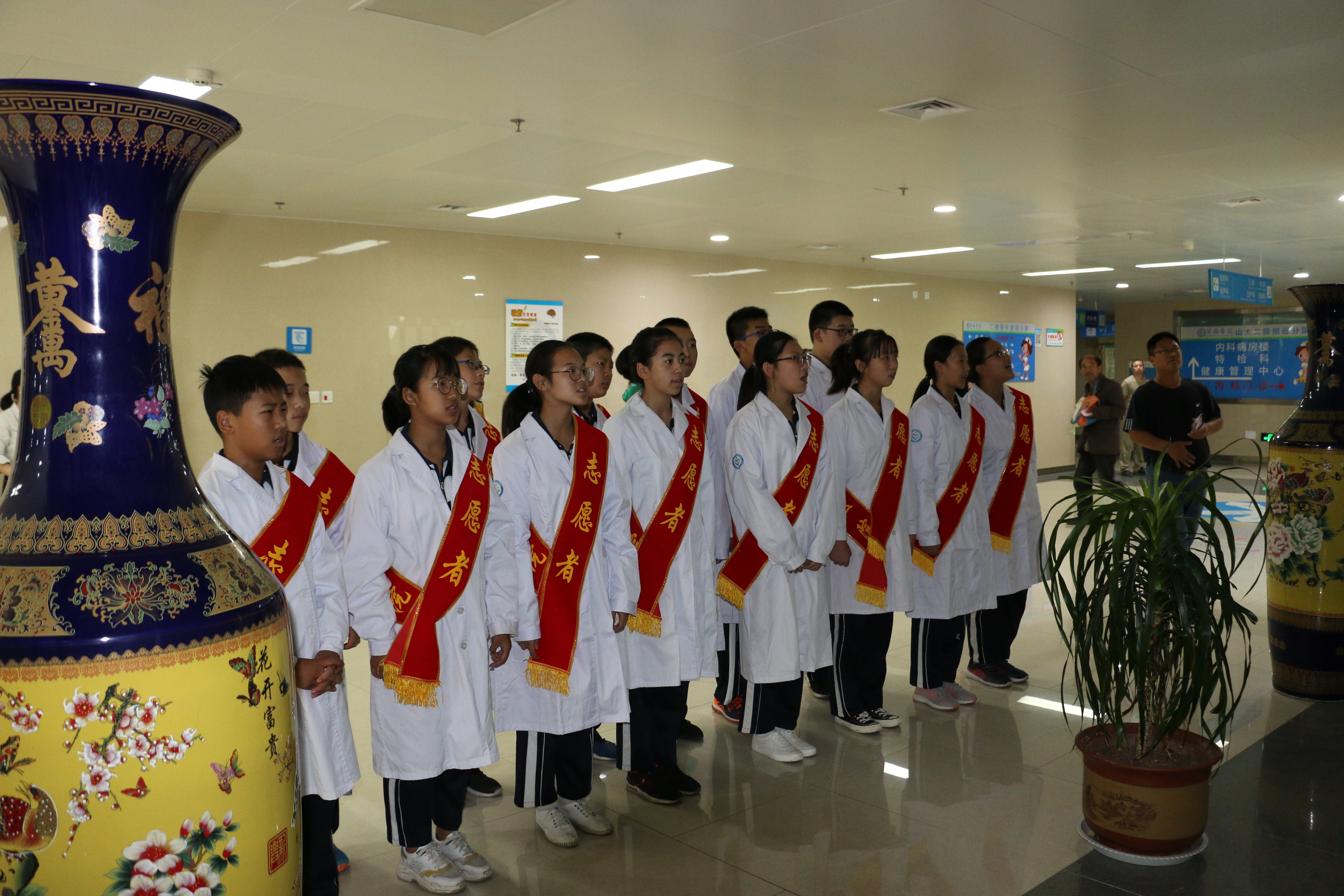 “我郑重地保证自己要奉献一切为人类服务。我将要给我的师长应有的崇敬及感戴;我将要凭我的良心和尊严从事医业……”学生在带教老师及工作人员的引领下郑重宣誓,将从医誓言铭记于心。随后,学生们被分派在导医台、内科、外科、产科、儿科、眼科、口腔科、耳鼻喉科、特检科、影像科,观摩科室诊疗活动,学习相关医疗知识,并在医师的指导下参与患者诊疗、体检工作。